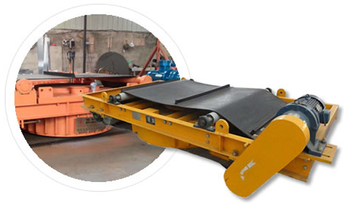 磁輥通過調速電機拖動,轉速的快慢通過調速表來進行調節,可控制磁選機的產量和精礦品位。礦粒經輸送帶被送入上磁輥分選,由于錳礦的礦粒有磁性,立即被強磁場吸附在磁輥上。